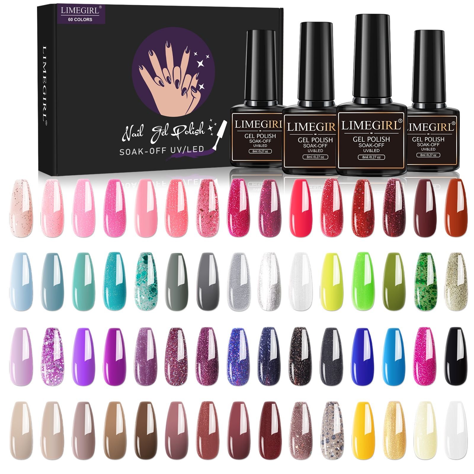 Home > Limegirl Gel Nail Polish Set 60/40/24Colors Semi Permanent UV Led Gel Varnish Soak Off Nail Lacquers Base Top Coat