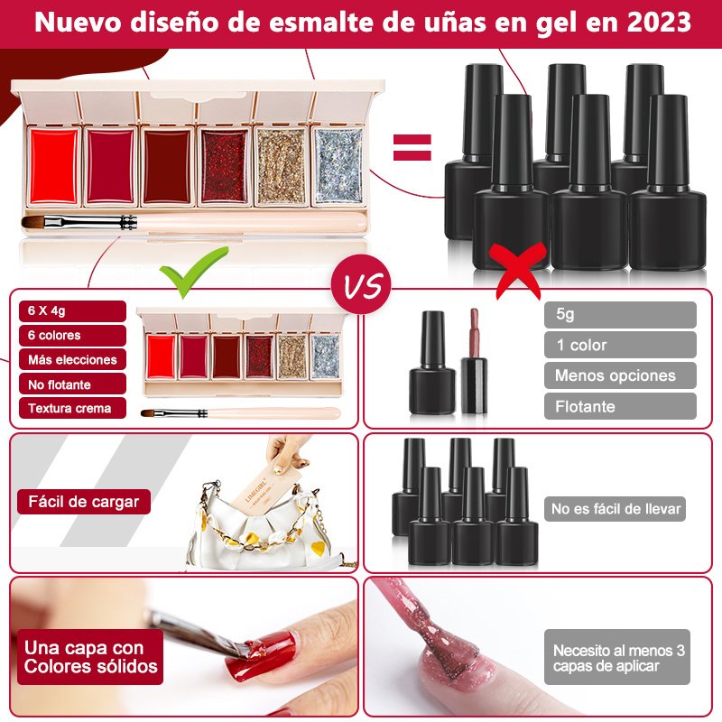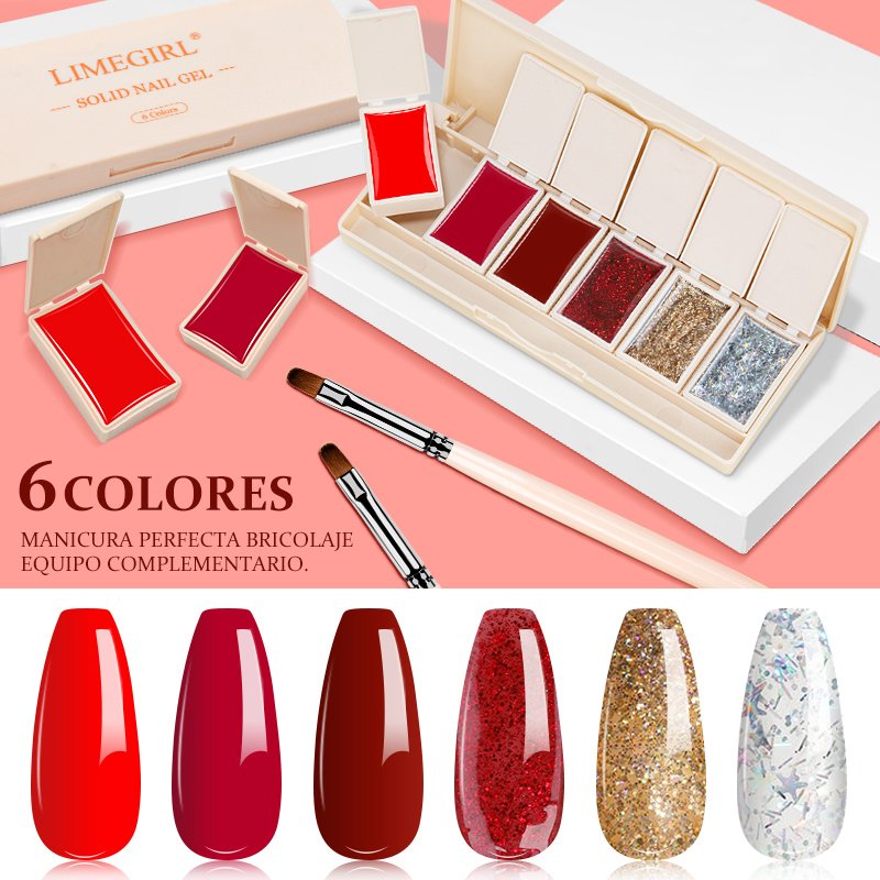 2.Solid Gel Polish Palette 6 in 1 Cream Soak Off Semi Permanent UV LED Lamp Paint Nail Gel Palette Of Hybrid Varnishes