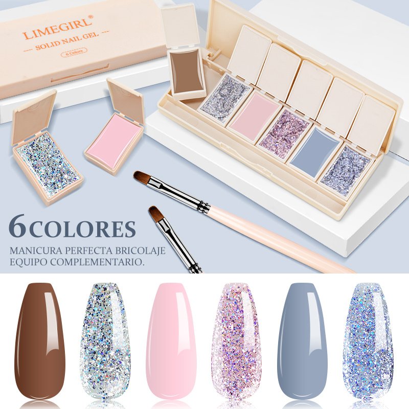 1.1 Box Solid Gel Nail Polish Palette DIY Soak Off UV 6 Colors Cream Mud Painting Gel Glossy Primer Glitter Gel