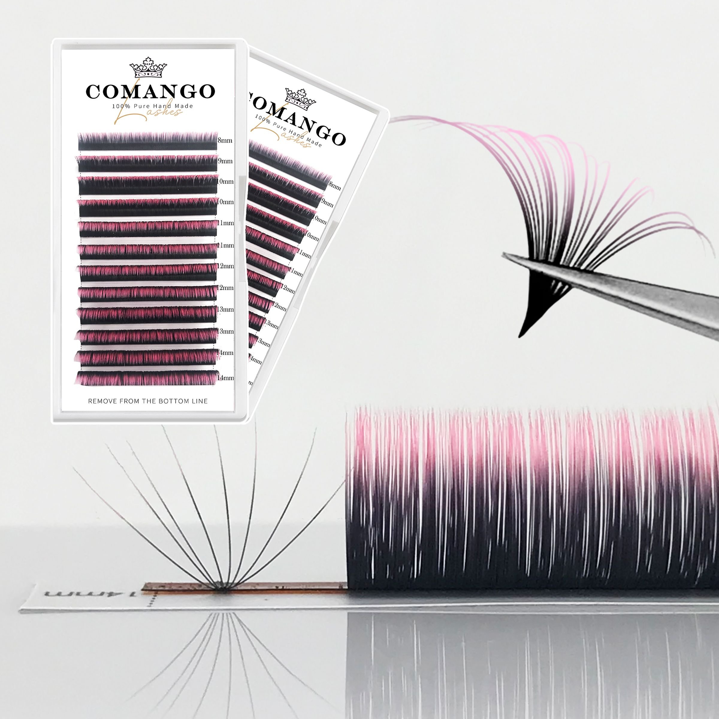 ❤[Ombre Colored Lashes Extensions]: CoMango Ombre Colored Easy Fan Lashes are black at the root and gradually change to another color towards the tip, You can subtly blend these colorful lashes with black eyelash extensions. Or create a full set of CoMango ombre colored eyelash extensions to be the center of attention. Light and soft as mink, easy to bloom, bring different fun to your grafting.