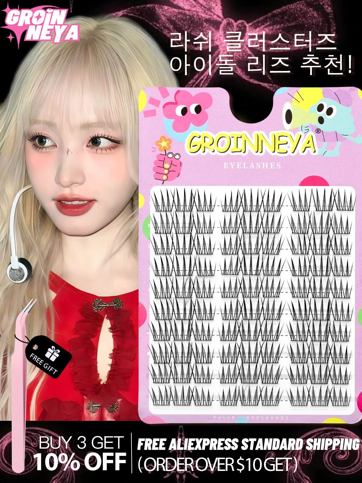 ✨ **Liz(리즈 착용 스타일)**를 구현할 수 있는 GROINNEYA 클러스터 속눈썹! 8mm부터 16mm까지 DIY Lash(셀프 속눈썹 연장) 가능한 5가지 길이로 데일리룩부터 글램 메이크업까지 완성하세요. 초보자도 10분 안에 붙이는 초간단 공법으로 **Lash Clusters Kit(클러스터 속눈썹 세트)**의 매력을 경험해보세요.
