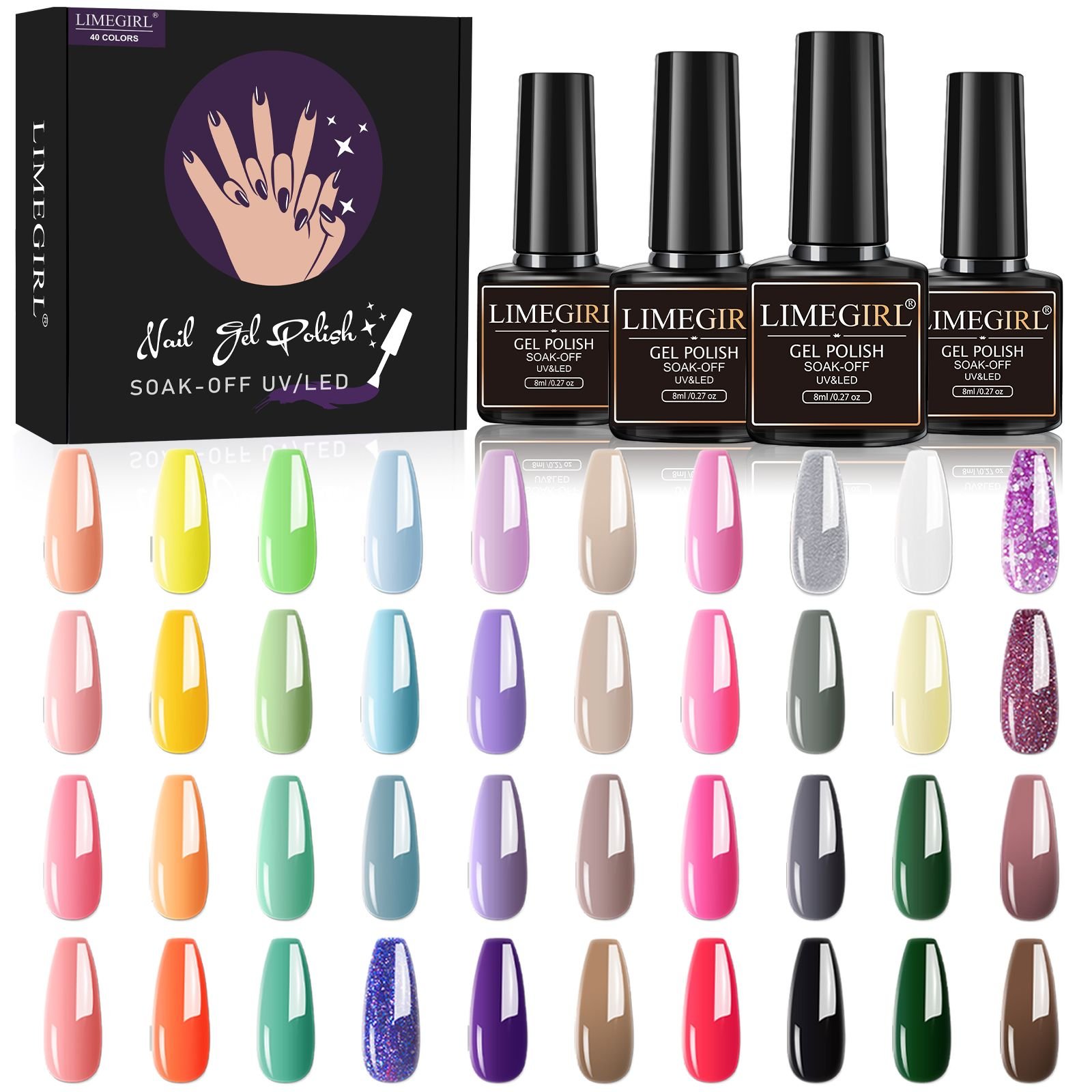 Home > Limegirl Gel Nail Polish Kit Pink Glitter Pop Summer 40/24 Colors Semi-Permanent UV Led Gel Varnish Soak Nails
