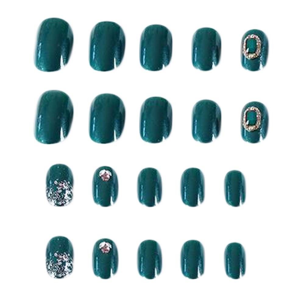 False Fingernails Artificial False Nails Tips Full Cover Wedding Bead Nail Art Decoration; Dark Green Fake Nails