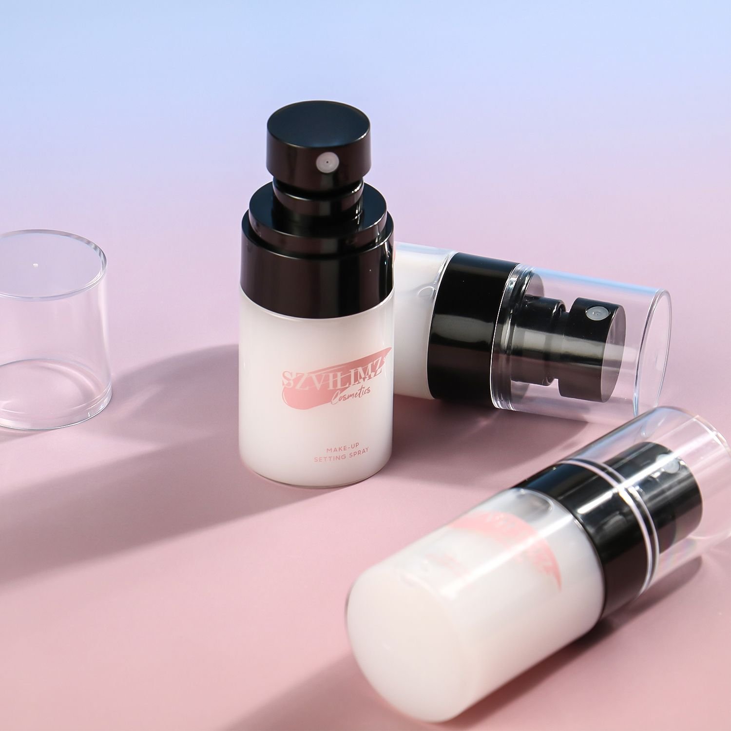 A nature-inspired, lightweight liquid spray that is sweat-proof, mask-proof, and controls oil. Customizable with your logo.