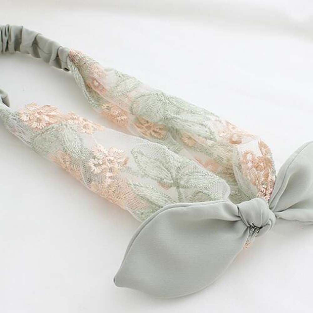 Home > Green Sheer Lace Headband Embroidered Flower Bowknot Hair Band Wide Hair Accessories Hair Wrap