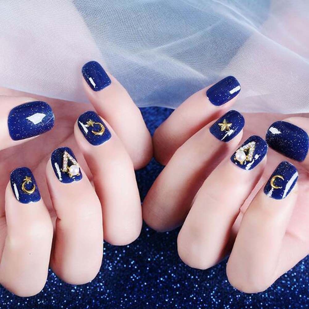 Royal Blue False Fingernails Artificial False Nails Tips Full Cover Wedding Bead Nail Art Decoration Fake Nails Royal Blue False Fingernails Artificial False Nails Tips Full Cover Wedding Bead Nail Art Decoration Fake Nails
